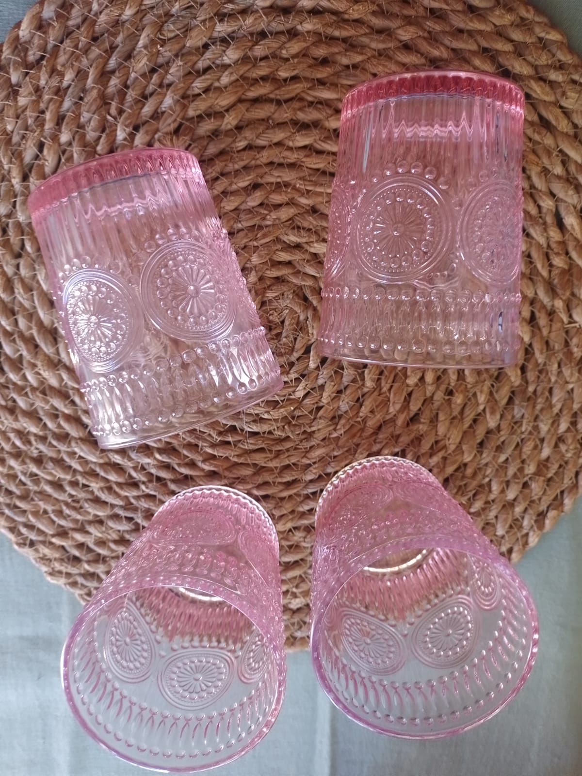 Vasos labrados rosas x6 300 ml